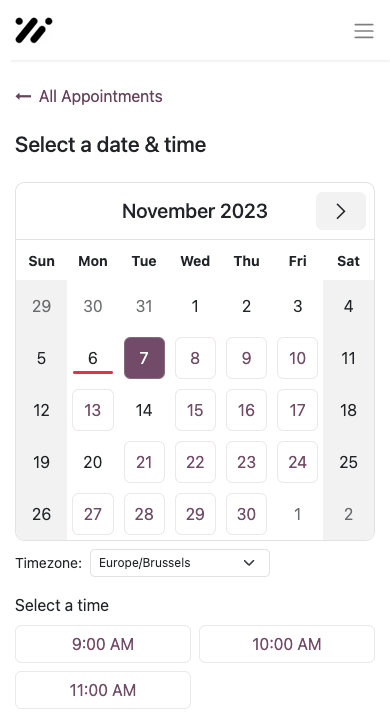 轻松安排时间,只需点击几下即可获得时间段。客户可查看空闲时间,并点击预约!